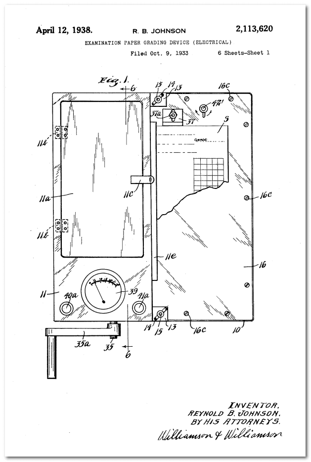The problem Dr. Wood found, though, was it was time-consuming to score the tests. You’d think it would be easy compared to grading the hand-written answers to various questions, but remember we’re talking about mass education here: thousands of schools jumped on the multiple choice bandwagon, and something easier was needed for the scoring.