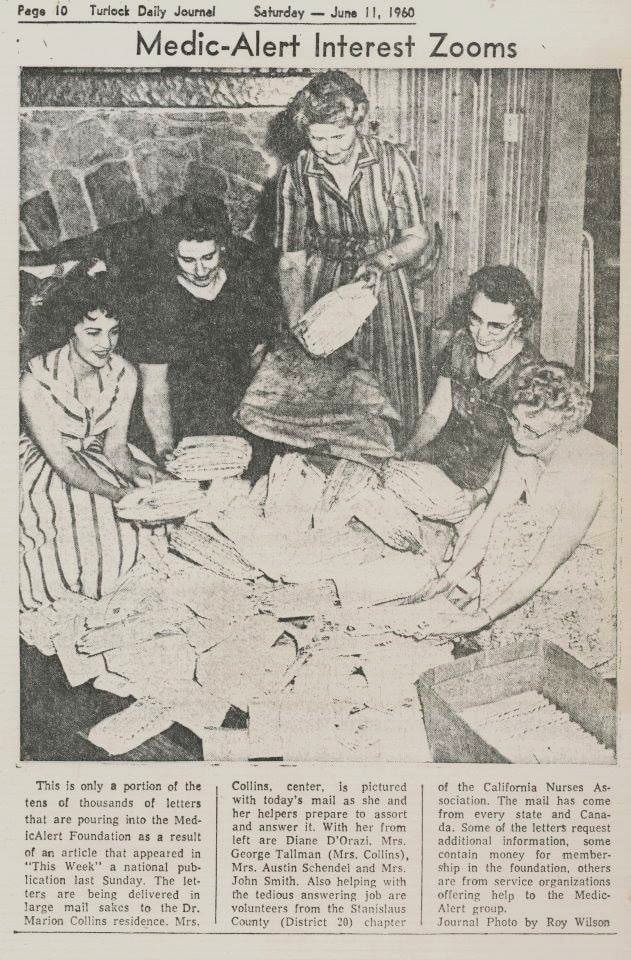 In the beginning, most of that money came from the Collins family: Dr. Collins put in $30,000 in the first two years because he knew he could save lives if he had information like that early on when treating his own patients in an emergency. In fact, he once said, “I think I can save more lives with MedicAlert than I’ll ever save with my scalpel.”
