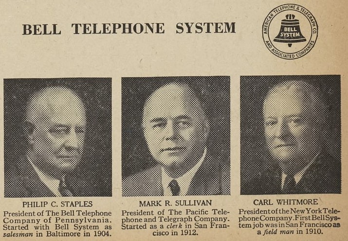 Sullivan was born in 1896, and before being the president of Ma Bell’s west coast operating company, he was a vice president at the mothership: the American Telephone and Telegraph Company, or AT&T, in New York, holding that position from 1942 to 1945. Then he was promoted to be the president of The Chesapeake and Potomac Telephone Companies, based in Washington, D.C., from 1945 to 1947. And in 1947 he took over the operation of the Pacific Telephone and Telegraph Company.