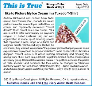 17. Active in my faith, and actively laughing at Sweet Jesus ice cream. Wonder if they’d let my church franchise a case for our cafe?
