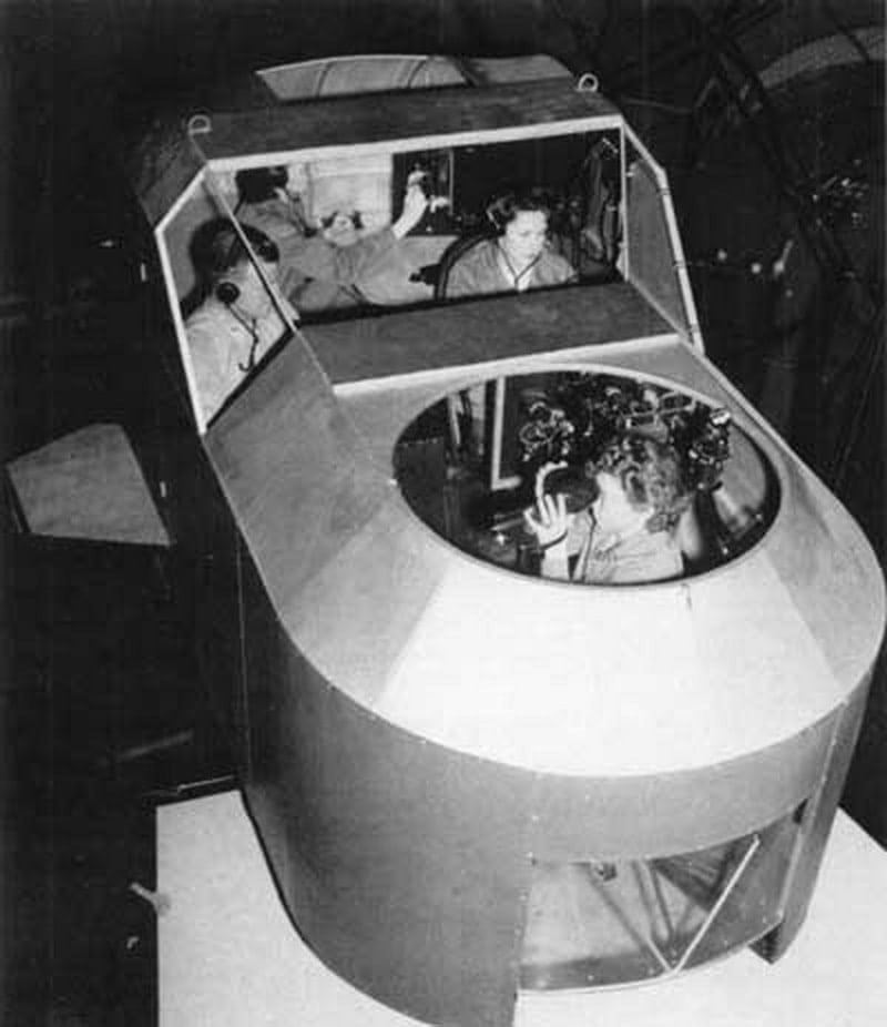 Those six units led to orders from Japan, France, Britain, and the Soviet Union, but all in all sales continued to go pretty slowly until something happened to turn it all around. You may be guessing that, too: World War II broke out, and the orders for what was now known as the Link Trainer flowed in, and the company churned out 80 of them a week. During the war the U.S. Army bought 6,271 Link Trainers, and the Navy bought 1,045 more, which was enough to train more than 500,000 airmen around the world how to fly. Link also made specialized trainers for the military during the war, like the Gunnery Trainer taught airborne gunners how to shoot down enemy planes even though what they were sitting in was making evasive maneuvers to avoid being shot down by the gunners in the other planes! There were also Radar Trainers, Navigational Trainers, and Britain requested Celestial Navigation Trainers large enough to house the entire flight crew to train together, rather than just the pilot or navigator. There was even a special one for the Navy: the Aqua Trainer provided simulation of water takeoffs and landings, instead of solid runways.