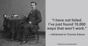 So here’s what I found particularly interesting about Dr. Wang’s study: when they compared successful projects and failed projects, they found about the same number of tries. So it really isn’t persistence, as common sense might tell you! Instead, it’s accepting the failures along the way because they have lessons to teach — that’s the Uncommon Sense approach: it’s working smarter, rather than harder.