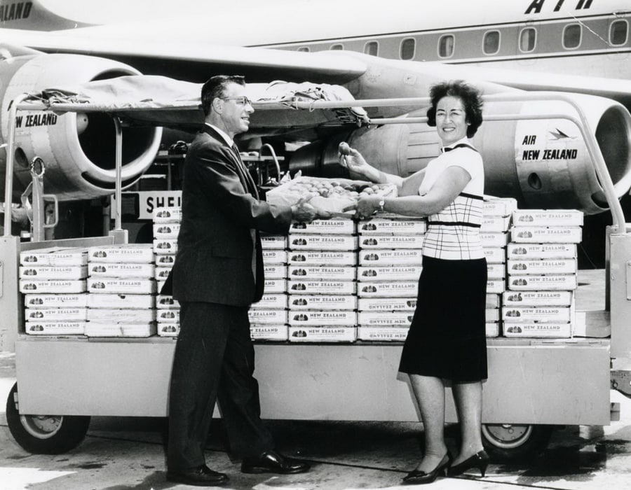 Photo Op: Frieda receives a shipment of kiwi direct from New Zealand in 1964 (Photo: Frieda’s Inc.)