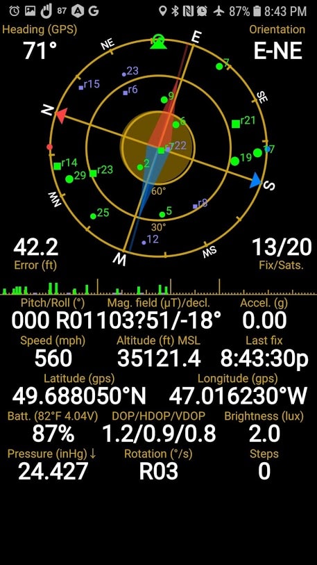 - Products I use/mention*: Pocket flashlight, about $30. The portable battery pack I have is discontinued, but if I was going to buy again I’d start with Anker, about $35. The GPS app I use on Android: GPS Status & Toolbox, which is available in free and paid (no ads) versions (I paid: $2.49).