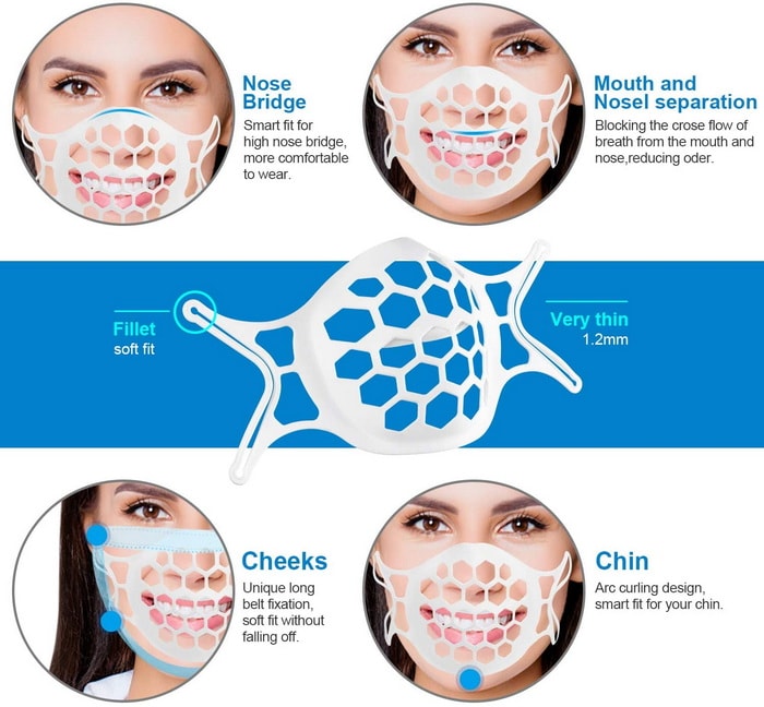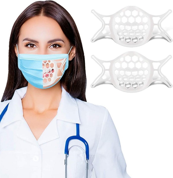 First, what the heck are “silicone brackets for face masks”? I found this Amazon example silicone (take a deep breath) “3D Mask Insert Turtle Mask Spacer for Easier Breathing Room, labato Mask Cage Silicone Mask Bracket Plastic Mask Inserts Face Mask Shield, Mask Frame Mouth Nose Guard Cool Mask Brace Breathe Cup” from Amazon.