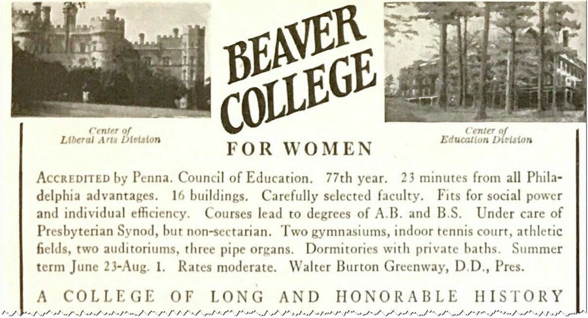 1930 Beaver recruitment ad. It was founded in 1853 as Beaver Female Seminary. No, really!