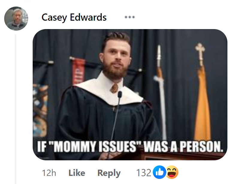 One of the memes I saw (shown here), suggesting Butker has “mommy issues,” made me curious, so I went to see if I could find out what his mother did: was she a homemaker who did nothing but bring up her children to succeed in the world (her son) or be homemaker-mothers (her daughter)?