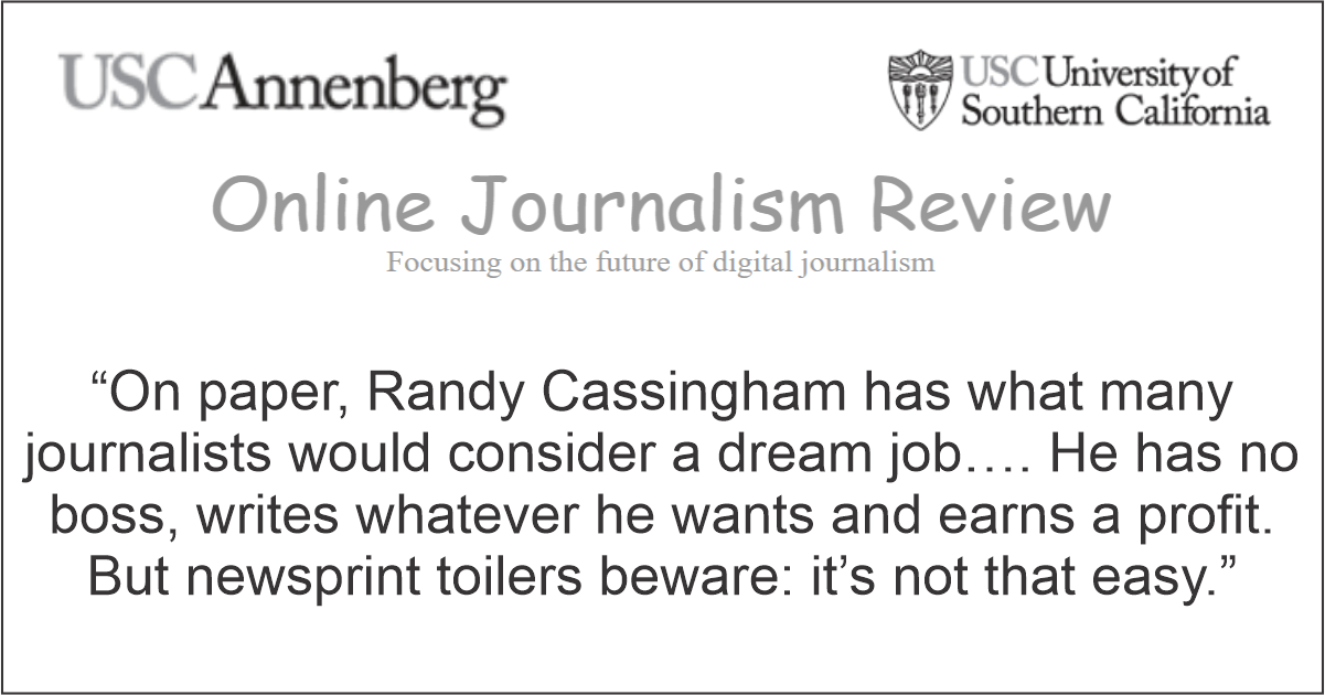 On paper, Randy Cassingham has what many journalists would consider a dream job…. He has no boss, writes whatever he wants and earns a profit. But newsprint toilers beware: it’s not that easy.