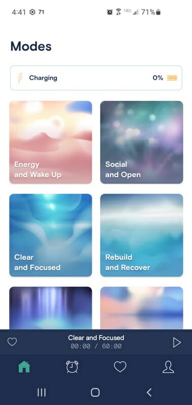As for other modes detailed above, I tried them all — and noticed no enhanced energy or start-the-day wakeup clarity, I was no more social or open (or antisocial or closed) than usual, I didn’t find any extra clarity or focus, it didn’t help with my meditation or mindfulness (I do meditate), nor noticed any enhancement of my everyday physical or mental rebuilding/recovery.