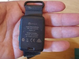 The Apollo Neuro comes with the “watch” module (black was the only color available when I bought), two fabric bands (wrist and ankle), and a USB cable to charge from your standard USB charger or computer.