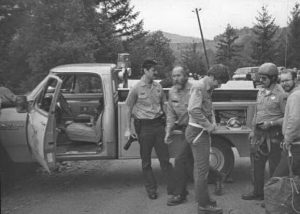 Me (center, holding camera) on the job as a deputy sheriff in the early 1980s, on a body recovery below us, down a cliff.