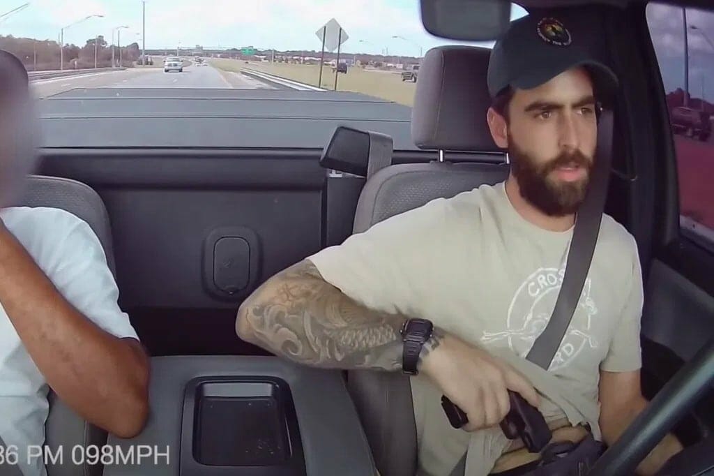 The victim threw the water bottle at Popper’s Toyota as he was going past, the FHP says. One thing that hasn’t been pointed out in the news reports: Popper already had his gun out by then. You know, early on in the “road rage incident” which he started.