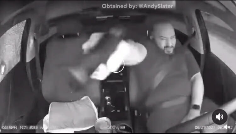 Screenshot from the video. Note the passenger window is already shattered from the first shot.