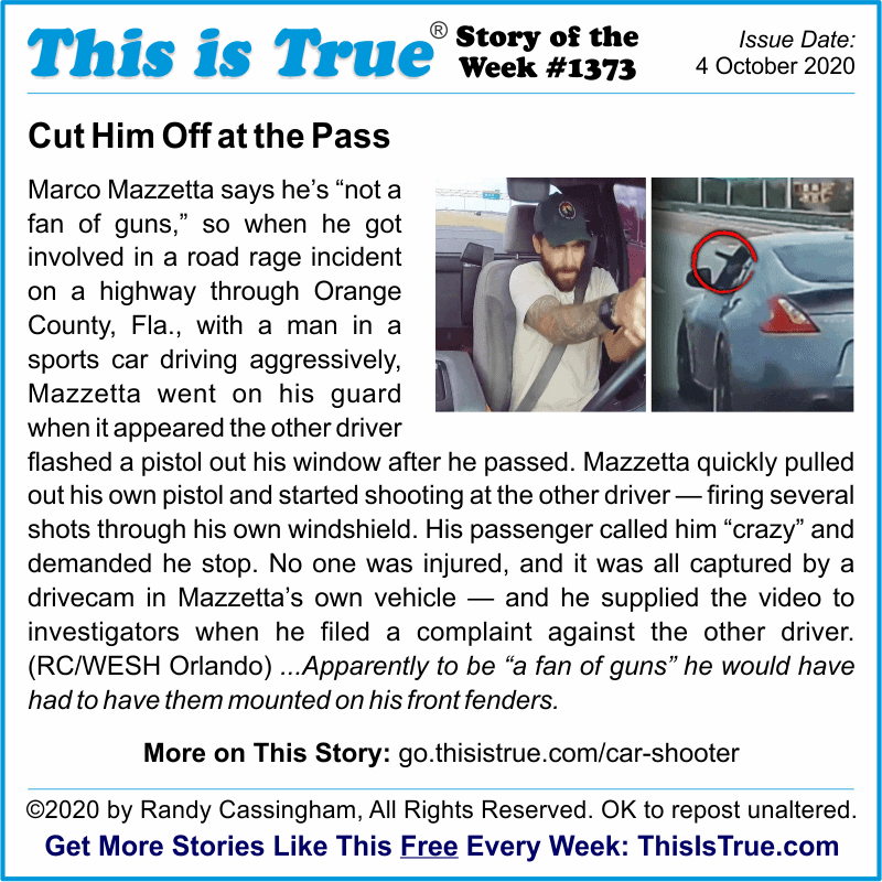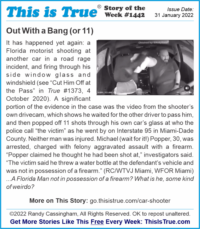 “Florida Man” really is a thing, and apparently so is “Florida Vehicle” (which, to be fair, is just a vehicle with a Florida Man at the wheel). Such stories led the past two issues (and ended up as Story of the Week both times), so let’s take a closer look.