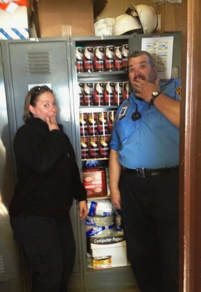James at work, pulling some sort of April Fools prank, giving you an idea as to his size. (Family photo)
