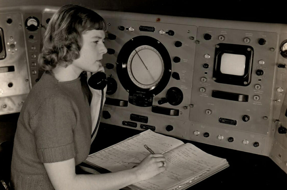 Virginia Norwood at the Storm Detector Radar Set at the Army Signal Corps Laboratories in New Jersey in 1948. (NASA photo)