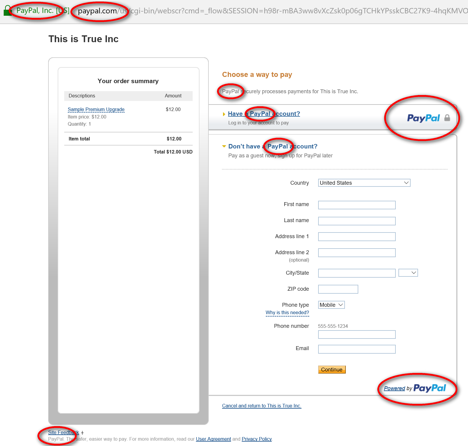 I highlighted the “Paypal” notes in that section of the page, but if someone overlooks that, well, here’s the page one lands on after clicking that button: