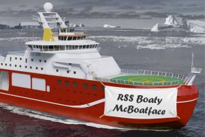 James Hand is now a legend. Oh, he was known before that, as a presenter on BBC Radio on Jersey, the British protectorate in the English Channel. But I predict that in the end, his main claim to fame will be his “Boaty McBoatface” line. By the time the contest ended, his suggestion got 124,109 votes, far surpassing the runner-up with 39,886 votes. B.McB would have had many more votes, but NERC’s web site crashed under the weight of the publicity over the cheeky suggestion.