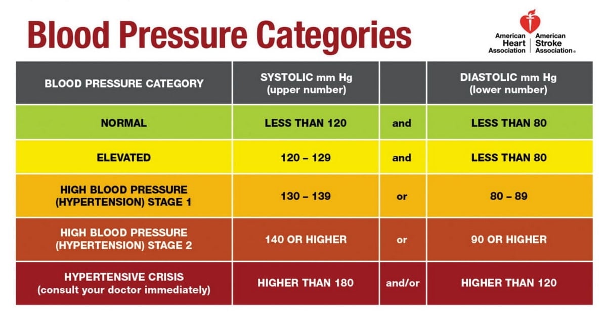 In 2017, the American College of Cardiology, in association with the American Heart Association, put out new guidelines urging doctors to treat blood pressure higher than 130/80, rather than the previous starting point of 140/90. The higher it goes, the greater the risk of heart and brain attacks.
