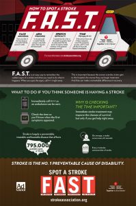 How to Spot a Stroke FAST, from the American Heart Association. Click to make larger, then drag it to your desktop so you can read it all in full size.