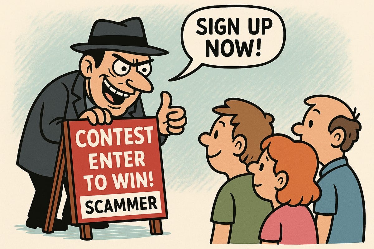 I certainly understand the need to protect people against contest scammers, but the reality is that it costs huge money to do a legitimate and legal nationwide (let alone worldwide) contest — which I suppose means the only ones doing contests are huge corporations …and scammers.