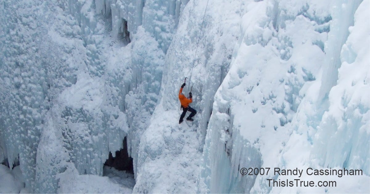 Alone on the ice while a partner far above reels in the slack. (Randy Cassingham)