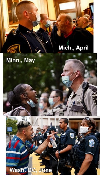 When a shopper at Quality Dairy in Dimondale, Mich., was told by an employee he couldn’t be in the store without wearing a mask, the man stabbed a 77-year-old customer who wasn’t even part of the confrontation; the older man was hospitalized in serious condition. The assailant ran, and store employees were able to describe him and his vehicle to police. A few miles away, an Eaton County Sheriff’s deputy spotted the car and pulled him over. The suspect got out of his car, slowly walked toward the deputy, and then rushed her holding two knives in one hand, and a screwdriver in the other. The deputy backed away and ordered that he drop his weapons, but the man kept charging and she opened fire. He was still able to grab her gun, but she kept him from taking it. The deputy, who is a 22-year veteran, was able to rack the slide to get the weapon cleared, and opened fire again: it took 10 shots to stop the man — and he still wasn’t killed. Sean Ernest Ruis, 43, a state employee, died in surgery later. The deputy, who has not been named, barely escaped injury. The shooting was clearly recorded both by the deputy’s body camera, and a security camera at a house. “She had to use deadly force” to save her own life, said Sheriff Tom Reich. (RC/Lansing State Journal) …Let me guess: Ruis was brain damaged from having to think about breathing through a mask.