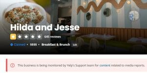 One Star. And note the banner across the bottom. (Author screenshot from Yelp.)