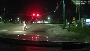 Deputies with the Volusia County (Fla.) Sheriff’s Office were chasing a group of motorcyclists who refused to pull over — deputies said they were “driving recklessly” with speeding and passing in a no-passing zone, not to mention refusing to pull over. A deputy was behind the lead bike when they came to a red light. The biker turned around to see the deputy right behind him; the biker flipped the deputy off and ran the light — and was hit by a crossing pickup truck. The motorcyclist ran, but was quickly surrounded by deputies and handcuffed. “I’m hurt,” whined Joshua Richardson. “Idiot,” a deputy replied. “I know,” Richardson said. “You know how your leg doesn’t get hurt?” another deputy said. “You don’t run from the cops and crash your bike.” Richardson asked, “Do you think this is funny?” The deputy responded “No, I don’t think it’s funny. It’s incredibly stupid.” Richardson complained, “We’re being chased by 12 cops in the middle of nowhere. What am I supposed to do?” (RC/WESH Orlando, WEAR Pensacola) …Not be an idiot.