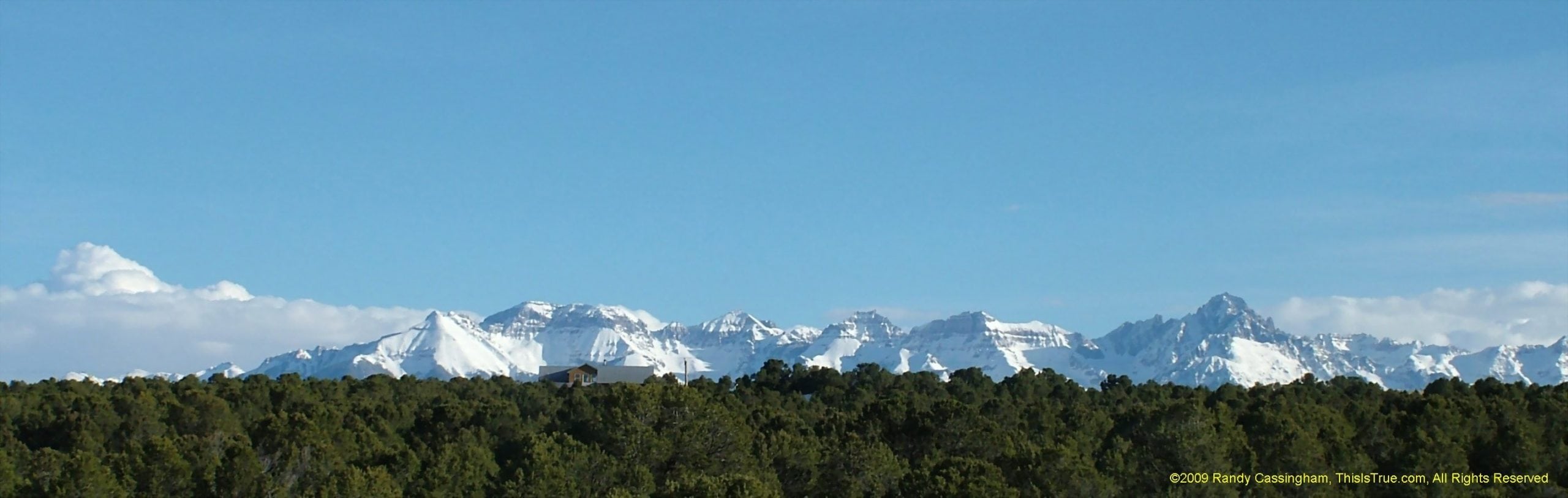 Well, I don’t want to put up too much personal info, since my neighbors and I like our privacy. In addition to the mountains to the east and South, to the west it starts flattening out toward the deserts of Utah, and to the north there’s the Grand Mesa, which is pretty nice to look at too. -rc