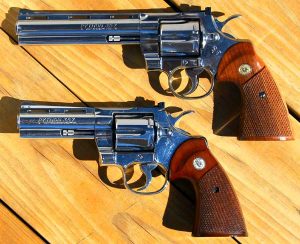 The only real modification was that both guns were equipped with laser sights so the audience could see where they were aiming. I’ve never had a Colt myself, but I know them and have fired them before. My first duty weapon was a Smith & Wesson Model 19 with a 4″ barrel— a similar, competing .357 magnum.