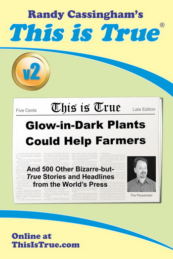 The all-new books for Kindle (and other ebook formats) and paperback include Volume 2. This is True: Glow-in-Dark Plants Could Help Farmers (And 500 Other Bizarre-but-True Stories and Headlines from the World’s Press) can be ordered here (or click the cover).