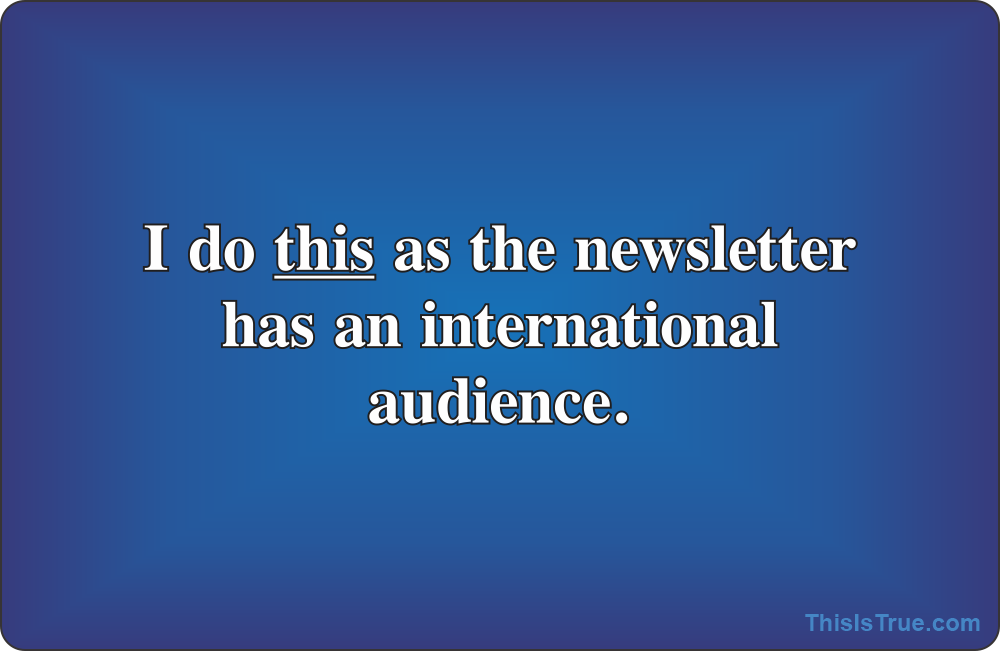 Oh, and last, I’ve had many foreign readers say they love to read the newsletter as it helps them learn the finer points of American English. I can’t let them down! -rc