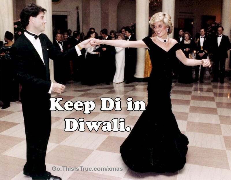1. I am still waiting for “Keep the Di in Diwali” — I wanted to see how many people would get more upset if you used a picture of Princess Diana than they did about the fact that religious observances were being referenced. As a practicing Jew, I have spent years explaining exactly what you explained above.